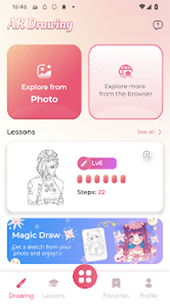 AR 드로잉: TraceCam & Draw는 스케치 경험을 향상시키기 위해 증강 현실을 활용하는 Android용 혁신적인 애플리케이션입니다. 모든 기술 수준의 아티스트에게 이상적이며, 사용자가 전화 카메라를 통해 이미지를 어떤 표면에나 투사하여 쉽게 윤곽선을 따라 그릴 수 있도록 합니다. 만화, 동물 등 다양한 템플릿 라이브러리를 제공하며, 개인 이미지를 가져와서 따라 그릴 수 있는 기능도 포함되어 있습니다. 이 애플리케이션은 오버레이를 조정할 수 있는 도구를 갖추고 있어 각 드로잉 세션의 정확성과 사용자 맞춤화를 보장합니다.